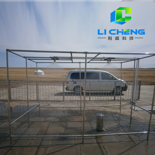 為使該系統(tǒng)模擬的降雨與自然降雨物理性能**大相似,采用世界上專業(yè)生產(chǎn)模擬雨滴噴頭的美國(guó)SPAYING SYSTEMS CO公司生產(chǎn)的FULLJET旋轉(zhuǎn)下噴式噴頭模擬降雨,配合幾十種不同規(guī)格的垂直全噴式雨滴模擬專用噴頭,疊加成一個(gè)雨滴噴射組(由3-5只噴頭構(gòu)成雨滴噴射組),即可有較大雨強(qiáng)變化,又可保證雨滴模擬效果從而形成從小到大的雨強(qiáng)連續(xù)可調(diào),雨滴形態(tài),降雨均勻度與自然降雨相似的人工自動(dòng)模擬降雨。